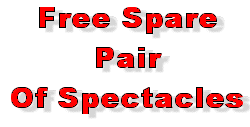 Once again for the Autumn Sales promotion we are offering you the opportunity to obtain a FREE SPARE PAIR of single vision spectacles when you purchase any frame from EYE 2 EYE at £39.95 or more. You can select your spair pair frame from our special FREESTYLE range, which we will then make up to the same single vision presription as your new first pair - Two for the price of one. Price: FREE SPARE PAIR # 0001 |